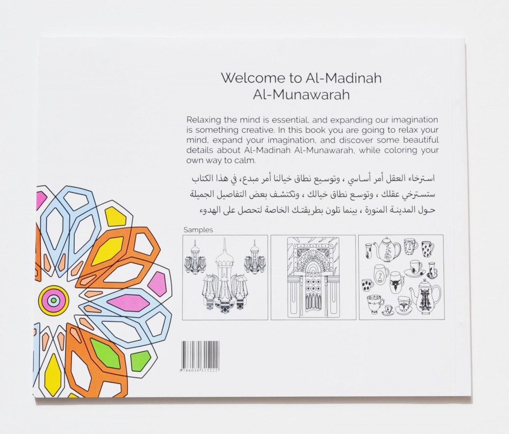 يحتوي هذا الكتاب على 41 نموذجًا للتلوين، معظمها مستوحاة من معالم المدينة المنورة والمسجد النبوي وبعض العادات التقليدية.
